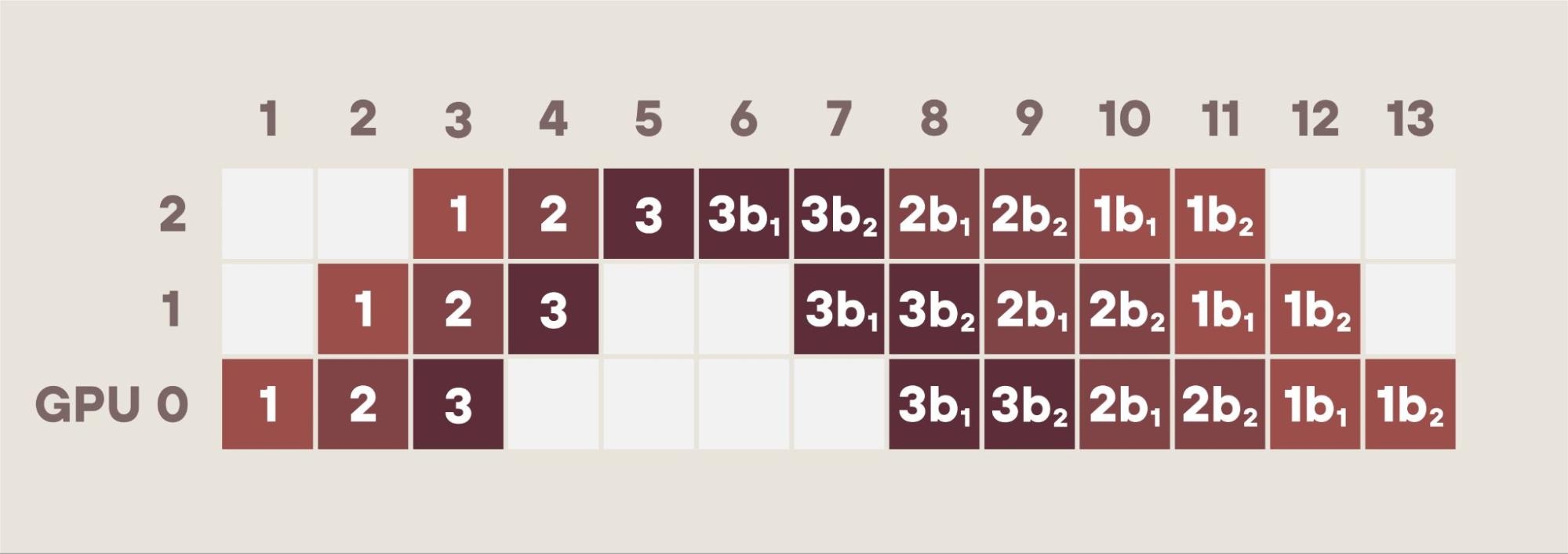 This algorithm allows us to add as much context parallelism as the depth of our pipeline permits, but it does limit our pipeline strategies. It requires no networking at all, so is highly efficient.